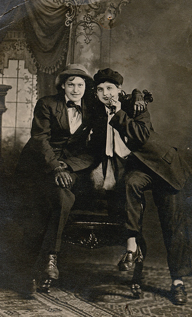 I have a large collection of vintage photos of women kissing, cuddling, holding hands and cross-dressing that I collected a few years back from eBay. I have them framed and adorning my kitchen, but I really need to scan them and post them sometime…