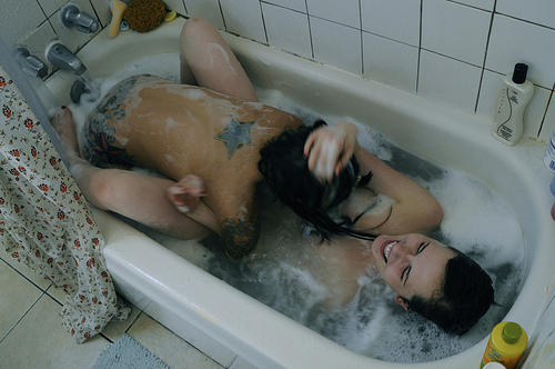 + Rode Hard, Put Away Wet: Lesbian Cowboy Erotica, edited by Sacchi Green and Rakelle Valencia, has nothing to do with the bath whatsoever, but exists: “This is authentic, get-real, can smell and feel the leather and taste the grit, working cowboy lore, nowadays or historical, and totally erotic. While some of the tales have moments of easy ridin’, most of them have a decided kink to their gallop, and even the occasional burr under the saddle.”