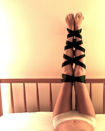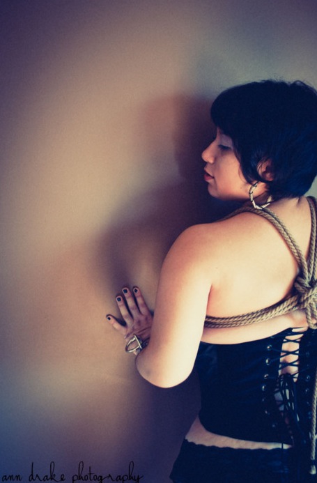 Regardless of the material, she ties good knots, which is part of the reason we fell in love. Perhaps the other part has something to do with stupidity more than anything else. But the sweet shift of her body between my legs reels me back out of my head. There’s no way to see from this angle. I yearn to tilt my head like an owl, if only for a fleeting glimpse.”