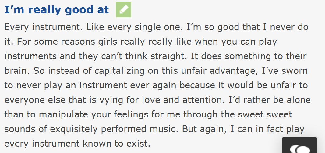I try to keep my profile cool enough so that if/when my friends see it, they won’t make too much fun of me.