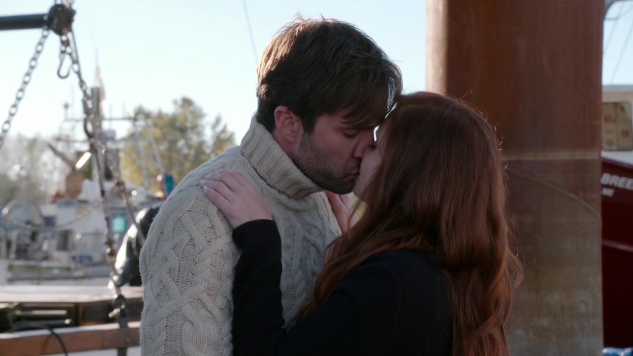 We open on Storybrooke’s harbor, where Belle and Ariel are stalking that guy Ariel met that one time. Do we know anything concrete about this Eric fellow? No. Could he be a serial killer, or a sex addict, or a guy who mounts the heads of neighborhood kids in his basement lair? Yes. Besides that, Belle doesn’t know this girl from a hole in a wall, but she sure is trying to get this bitch laid. Looks like Eric’s been making his living as an LL Bean model, since no sensible sailor/fish-mongerer would ever be wearing a white sweater that clean. They walk in on him chopping up fish. Awkward. He and Ariel immediately recognize each other and start making out. Additionally awkward.
