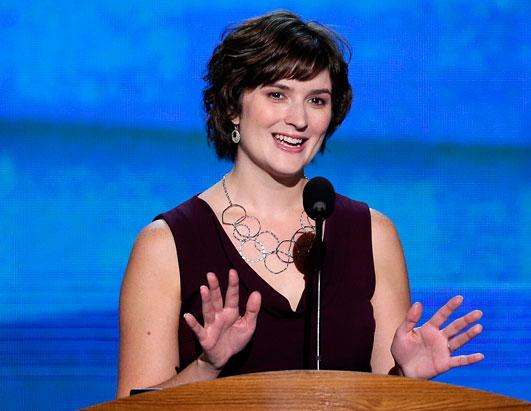 Speaking of being a generally decent person, Lilly Ledbetter is succeeded on stage by Deval Patrick, governor of Massachusetts. I know no one else cares about the governor of Massachusetts, and that’s fine, but I’m from there and have many Deval Patrick feelings, so bear with me. I’m less interested in talking about his politics (although I also feel generally positive about those) than I am about his awesome gay daughter.