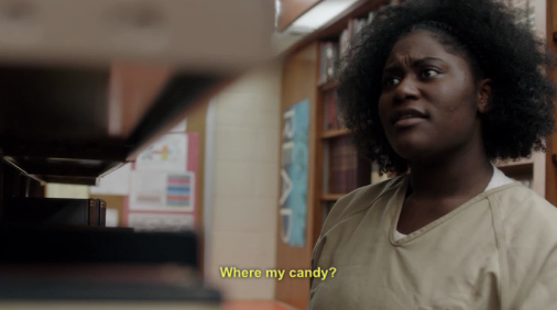 Taystee gives Healy the 411 in exchange for candy. Healy gives her Good N’ Plenty, though? Come on, Healy, you can at least manage some fucking Starbursts. Don’t fuck her over with that Good N’ Plenty shit. No one wants little nibs of licorice ass.