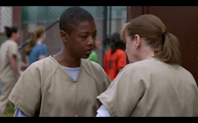 Everybody’s having mommy issues: Poussey’s depressed that Taystee and Black Cindy are being mean to the kids and dissing their own mothers ‘cause she liked her Mom and now her Mom is dead. We know this season is about “motherhood” and this episode kicks that off and then some — Taystee says she’s done with mamas, and mama stand-ins, too. Black Cindy says her Mom thinks she’s a shit.