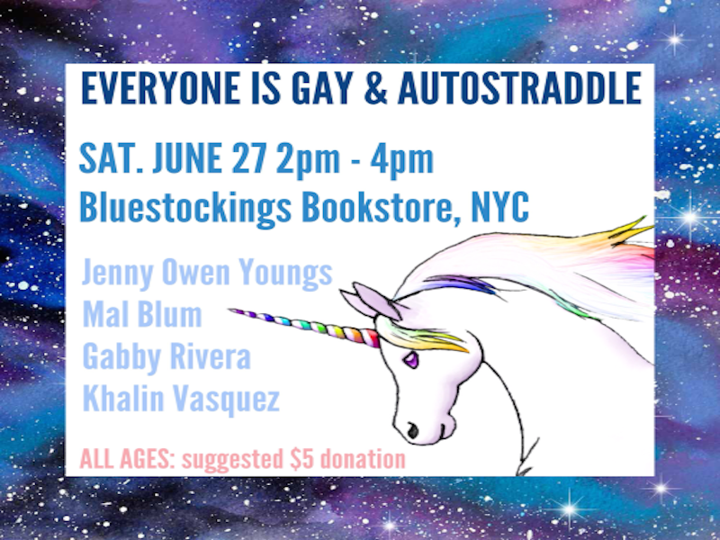 Attention NYC: We’ve got the best all-ages Pride party for you before the Dyke March. Join Everyone is Gay and Autostraddle at Bluestockings. Unicorns, music, books and magic!