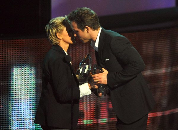 PEOPLE’S CHOICE AWARDS: …were really weird. Right? I mean, the script was weird, the jokes were sort of awkwardly lame, the speeches were generally boring… well, we didn’t watch that much of the show. It was weird. Unfortunately, due to excessive and invasive product placement — and trust us, we’re okay with product placement in theory, but we think advertising is more effective when delivered to a target market in slow steady doses (like a blogad!) rather than thrown in the face of a bajillion American faces at the same time — we were unable to view the People’s Choice Awards. After two “behind the scenes” segments about what great hair & beauty products we could get at CVS and the GLEE win followed up by everyone getting free pizza (it wasn’t delivery though y’all), we were like, fuck this shit. But we’re pretty sure we know what happened: