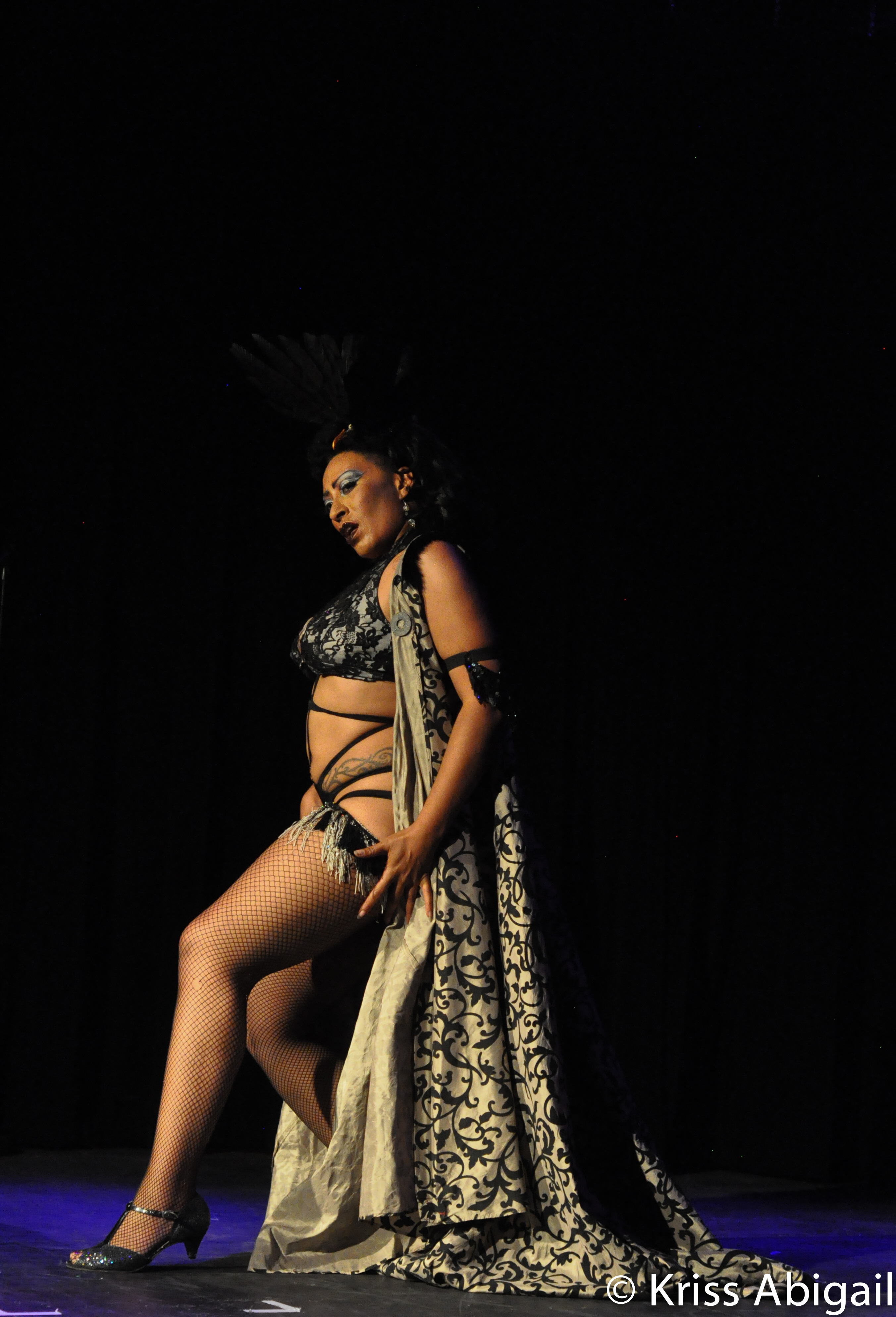This erasure of performers of color is ubiquitous in the documentation of the history of burlesque. Despite black performers having a formative role in the early burlesque scene of the 40s, 50s, and 60s, rarely are performers of color documented in burlesque history books. This erasure carries over into modern burlesque documentation, with a notable invisibility of performers of color. Jeezy also noticed a lack of audience members of color. “Believe it or not I’ve actually heard people say ‘Burlesque is for white girls.’ This inspired me even more to do my part to increase visibility for the incredible Black performers I knew in Chicago and beyond. My goal is to not only showcase diversity onstage but to increase diversity in the audience as well. I want to bring this beautiful art form to my community and show them how incredibly transformative it can be. I also want to remind other producers of their responsibility in seeking out performers of color, various body types outside of the socially accepted spectrum, and gender expressions. If I, and others, are creating an entire shows around this, then it’s very possible for producers to increase diversity in their shows.”