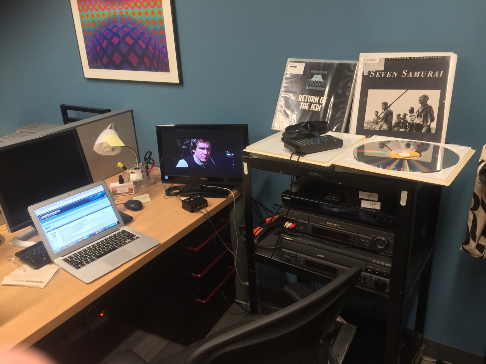 “I’m a research assistant at a university film library, where I watch our library’s laserdisc collection and document rare and exclusive film content. People who work in my department are always asking me, “What…exactly do you do?” I have a standard, sophisticated answer I give them but the real answer is, “I watch movies all day.” Also, since I’m used to 12″ laserdiscs, DVDs now look very small in my hand.”