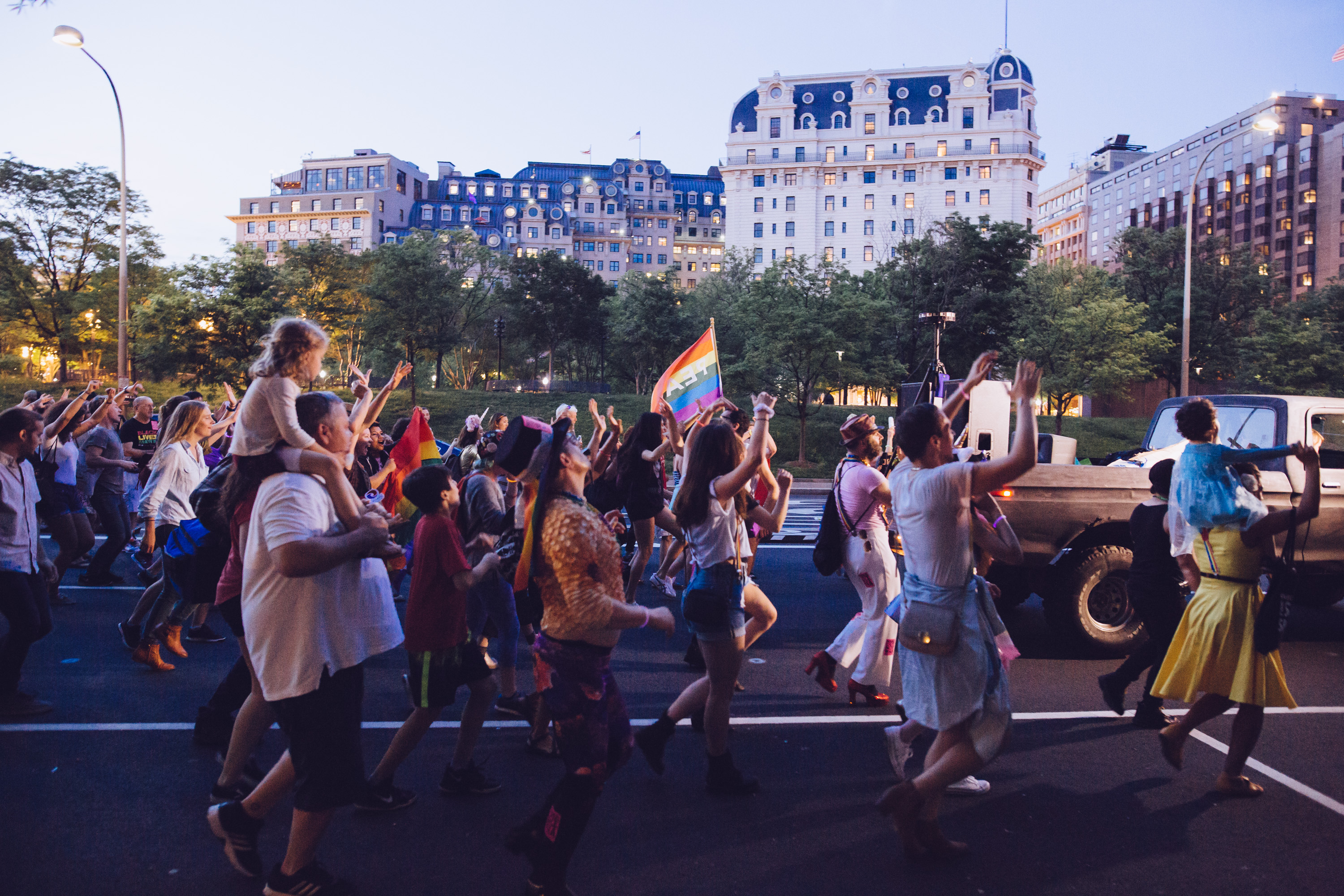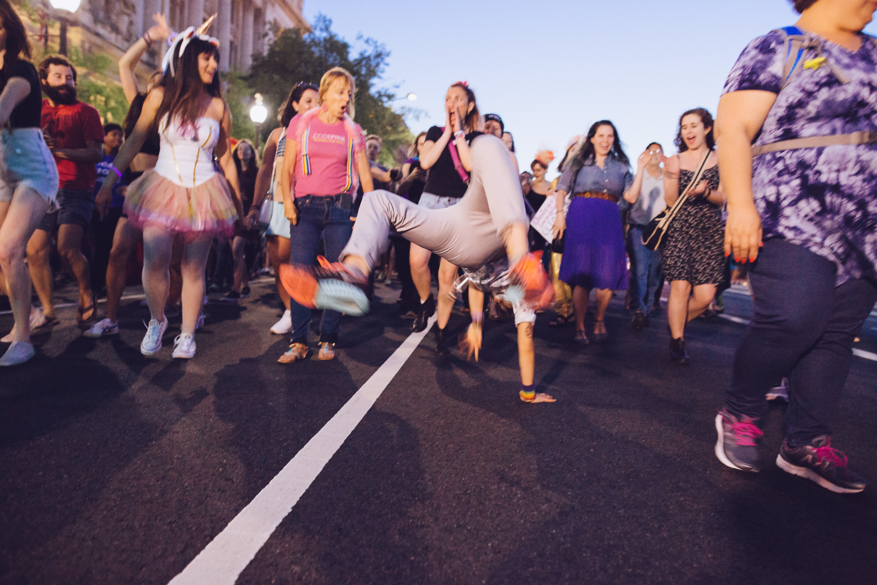 On Friday, we took to the streets of Washington D.C. with a huge queer dance party. From the people who did the queer dance party at Ivanka Trump’s house and the Daddy Pence Protest, it was a collaboration with Collective Action for Safe Spaces, Trans Women of Color Collective, Many Languages One Voice, Queer Resistance, CODEPINK, 350 DC, Queer Bloc (People’s Climate March), Empower DC, DC Jobs with Justice, and Taking Actions.