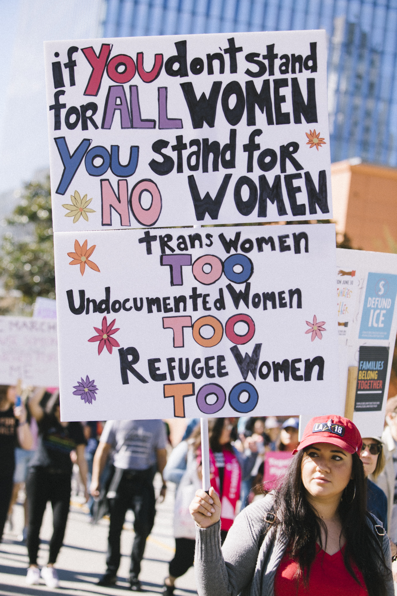 The Los Angeles Women’s March, which I attended this year, is an entirely different foundation with different organizers. Yes, there were problematic white people at this march, but trying to learn from the mistakes of previous years and organizers, the LA Women’s March’s mission statement is intersectional and inclusive. Hidden in the sea of pussy hats and Instagram marchers, folks took up space, amplified others’ voices, and marched for intersectionality.