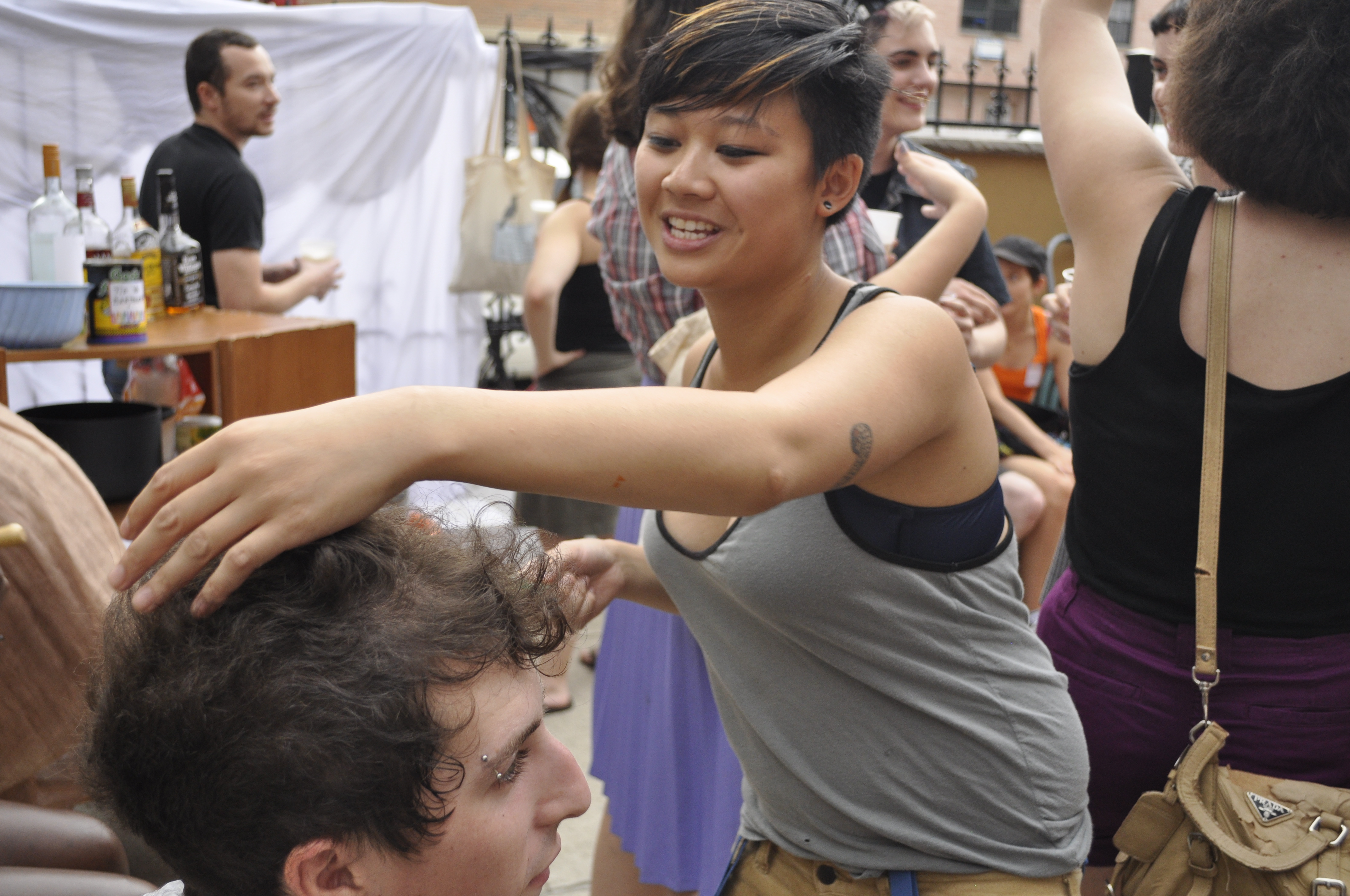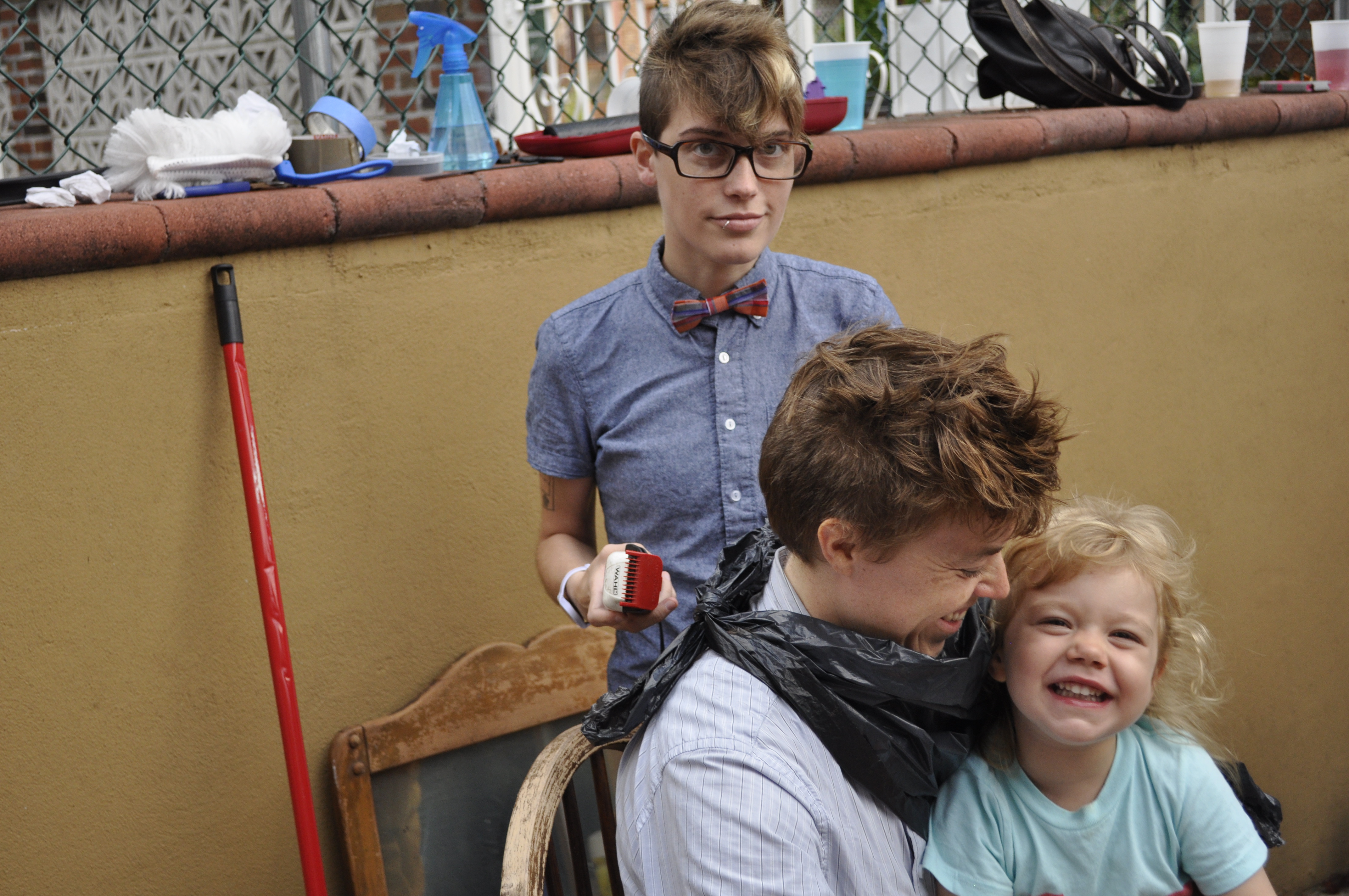 When Autostraddle writer and queer barber extraordinaire Katrina ‘KC Danger’ Casino asked me to photograph her incredible brainchild, PHRESH CUTZ, I jumped at the chance. The event was slated for Sunday, September 2 and promised (via Facebook invitation) to be “last outdoor party of the late great summer 2012.” PHRESH CUTZ would be a queer pop-up barbershop party in Brooklyn, run by Hair Force One, a group of friends who met via the Internet and loved cutting hair, inclusive spaces and each other. It would be a place for queers to kick back, have some drinks, eat some snacks, meet some like-minded humans and get a sweet haircut. I was itching to take photos the minute Katrina told me about it.
