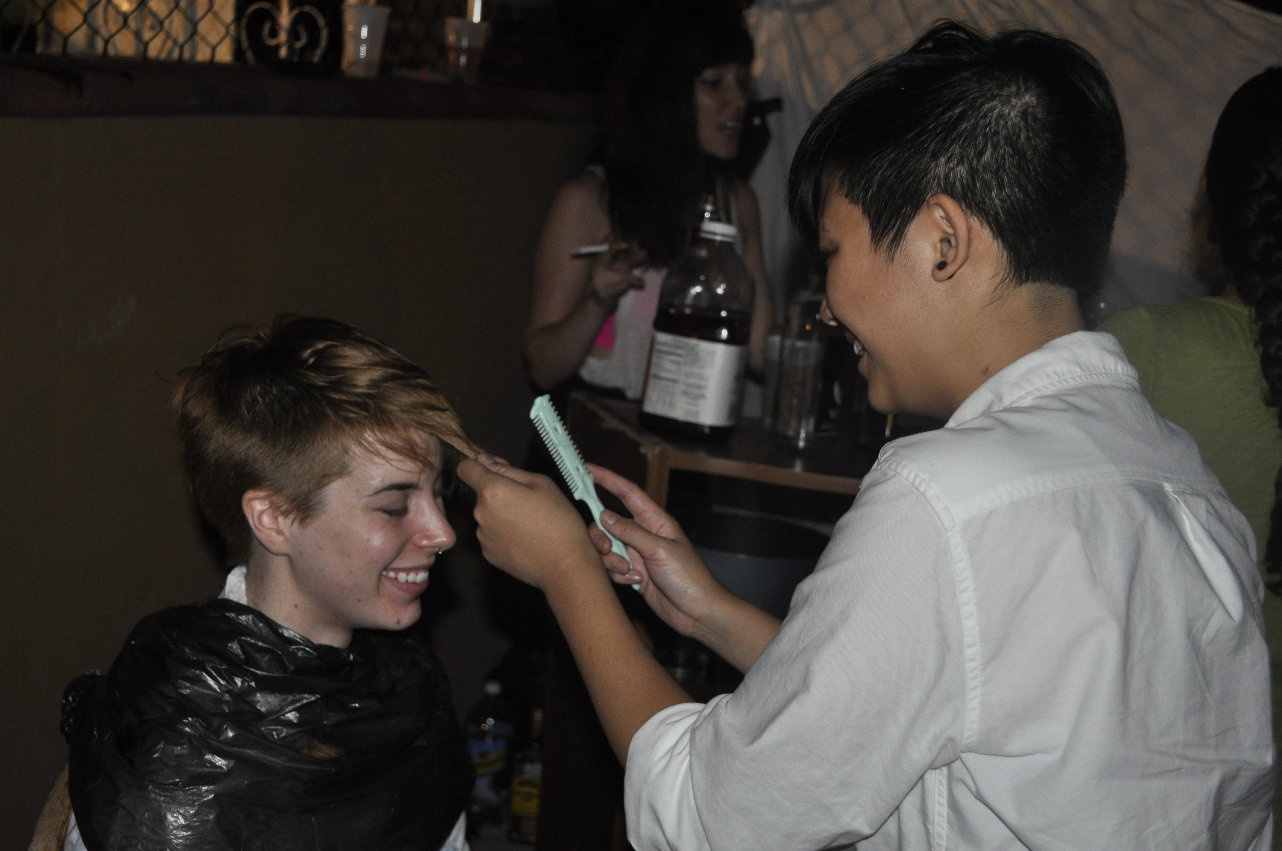 “There’s something large and indescribable about the feeling and the action of creating a space. There may not be any non-corny-sounding way to talk about “people being able to be themselves,” but phrases are only ever cliche because they’re true, and feeling like you can be yourself — like your whole true self — is invaluable. There are a lot of microaggressions in this world: constant misgendering, presumed straightness, invisibility, pervasive heteronormativity and often not being able to speak or think or look exactly the way you want. It’s not like one haircutting party is going to end this, but every safe space created brings us one step closer.”