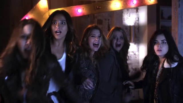 Mona tends to her wounds, not very well I might add, in the creeptastic hotel in the woods where we we first found A’s lair. Mona’s plants the idea in Ali’s head that she should fake her death and disappear.