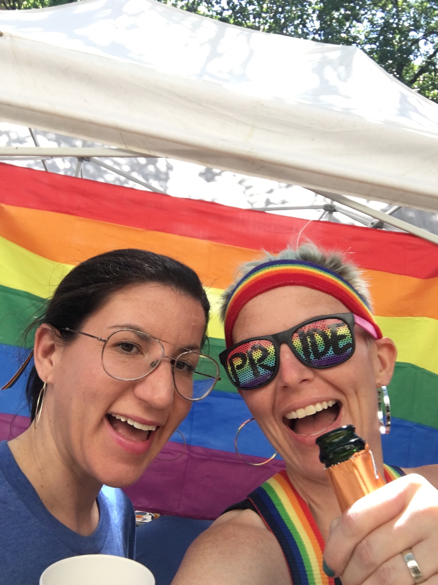 This is the only selfie I took, but I love it because I had just seen a bi Pride flag and the joy of that is on my face. This Pride is special because: 1) it was the first Pride I’d ever been to, and 2) I was there despite having a huge fight with my husband about going. I’d come out to him as bisexual about six months prior and he was still angry at me. We were in Honolulu for an unrelated professional meeting, I wanted to go to Pride, he was angry, I went anyway. He regularly gave me shit about going ever since. But there’s a happy ending: a month ago, I moved states and initiated a divorce and am super ready to move on with my life, being myself, and many more Prides!