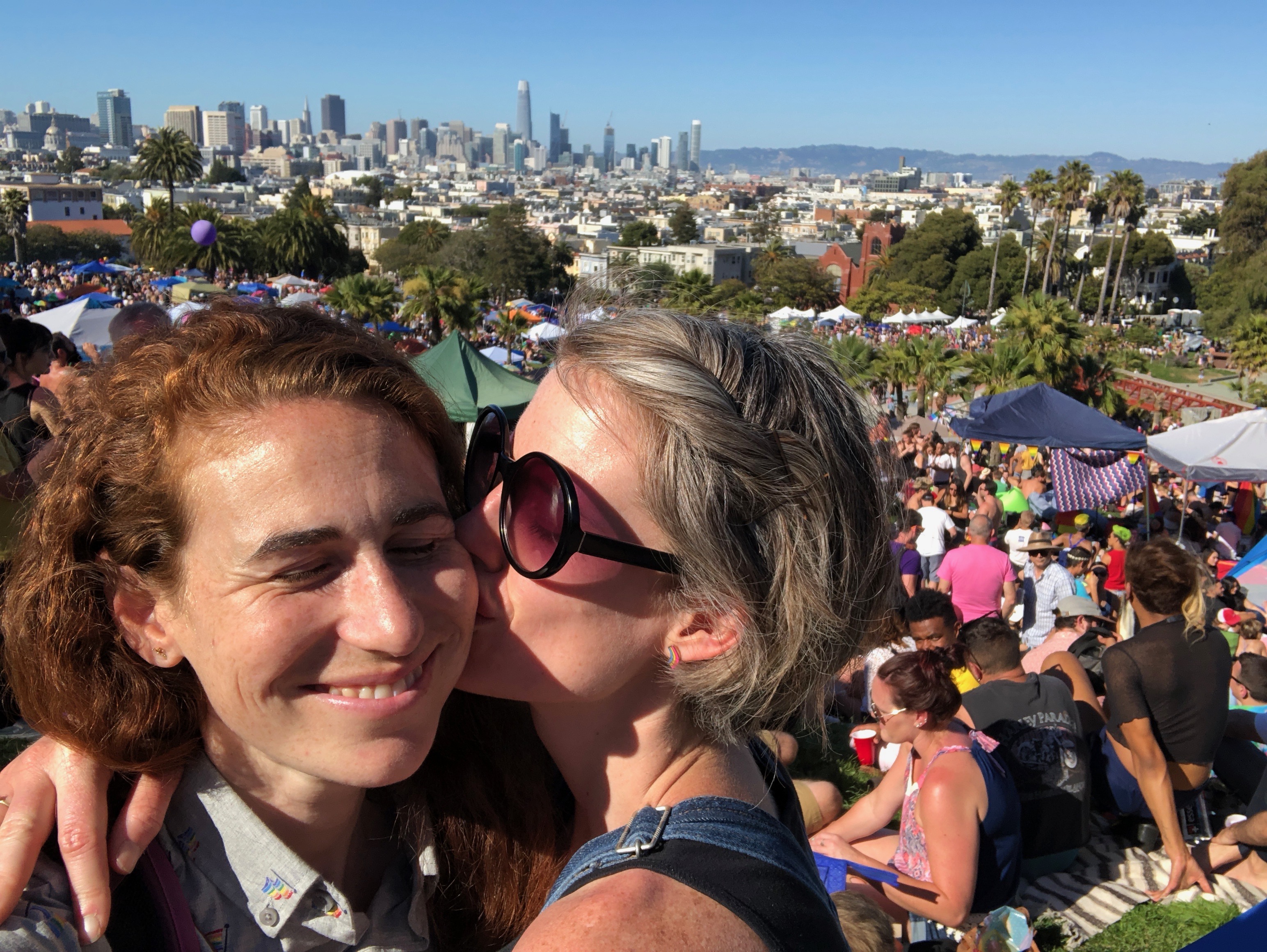 I’ll never forget turning the corner to see Dolores Park and seeing it packed to the edges with happy, sweaty, sparkly queer folks. We found a tiny spot on the lawn and spent the next several hours grinning like fools and looking around in awe. It wasn’t my first Pride, but it was my first after coming out, and it was our first Pride together as a couple.