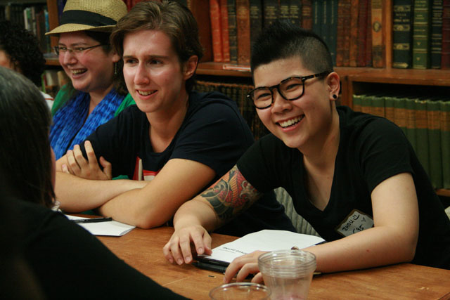 It’s important to note how this stellar event came about. You know how I’m always going on and on about queering all the spaces? Well there’s a reason for that! Put queers in positions of power and we can make stuff happen! Kate, the badass behind this concept, is a queer lady who happens to be on the events staff at The Strand. She wanted to create this event and her company supported her. See how that works? It’s so neat, I really truly love it. The Strand deserves a huge shout out for hosting such a great event for the queer community, and I am personally asking that all New York-based Autostraddle readers show our love and support by spending our book-buying dollars at this fine institution. You don’t have to of course, but if you need some incentive you should know that Gabby stood on a table last night and made this same request, so. We’re just saying.