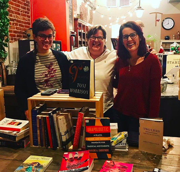 Charis isn’t the only bookstore with a robust list of community programming. Firestorm Books & Coffee Cooperative in Asheville, North Carolina, for example, offers weekly recovery groups, harm reduction workshops, film screenings, books to prisons programs and monthly letter writing sessions. After spending all of fifteen minutes in the store in 2018, the organizer of Asheville Books to Prisons program started telling me about their work as he brought several boxes into their back room for a logistics workday. Most of the programs operating in Firestorm are actually run by residents of Asheville instead of staff members. Libertie Valance and Beck Redacted, two co-owners, shared that they were most proud that “many people feel very welcome in the space.”