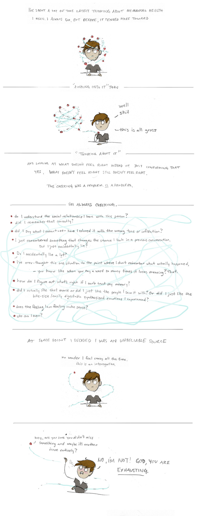 Cameron-thanks for your comic. Luckily a lot of these thoughts have calmed down for me since I upped my Celexa to 40mg in 2015, but I still grapple with them occasionally. Hugs to all of us!