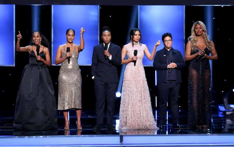 With Angela Robinson, Lena Waithe, and Laverne Cox donning the stage, three of the six women represented were out queer and trans black women. In the middle of this already big moment, these three women broke another glass ceiling.