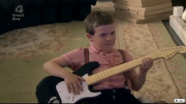Cook’s little brother is inside, his name is Paddy and he’s wearing suspenders and rocking out to Motörhead’s “Ace of Spades” on Rock Band. Cute overload. What’s with the little brothers on this show being so adorable? Also, Cook is happy to see him. They share a tender moment of brotherly love that endears us to Cook for the time being.