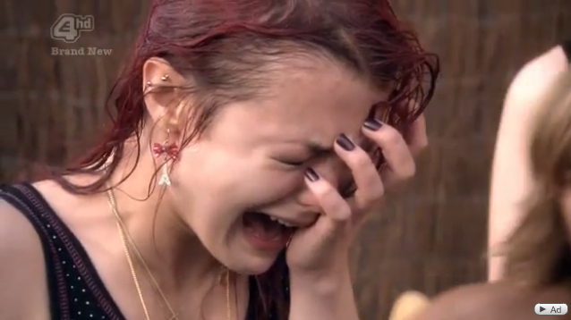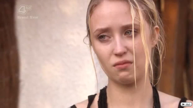 Katie lies down next to her and holds Emily’s hand and gives her a hug while she cries, it’s very sweet. Really, it is. My eyes watered a bit.