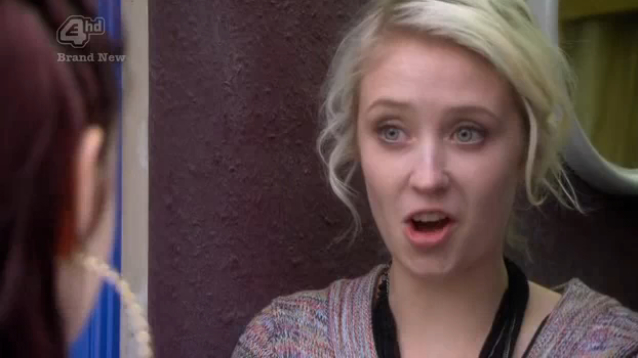 Katie storms out of the bathroom — SURPRISE! Effy & Freddie are there canoodling, probs celebrating their new Cook-free lifestyle. Katie’s confused about why they’re there and also pissed ’cause Effy kinda stole Freddy from her. Effy’s all about moving on though, which I guess is sorta easier if you’re not the one who had your skull bashed in with a rock.