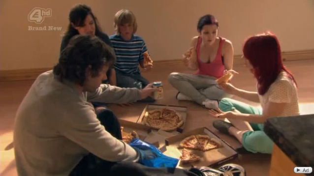 Remarkably they still have an appetitie although I imagine this is a really nice scene for them, the family back together again. They all sit on the floor and eat pizza and its lovely.