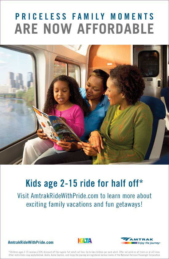 The corporate world is getting in on the act too, with certain companies embracing inclusive advertising, and some CEOs using their influential positions and gazillions of dollars for good. JC Penney blazed the trail with their recent Two Moms/Two Dads ads and catalog shots, and now Amtrak has unrolled its “Ride with Pride” campaign, featuring their own Double Mom/Double Dad ads, a website with destination recommendations (e.g. “Martha’s Vineyard is extremely gay-friendly… some enjoyable pursuits include exploring the Aquinnah (“Gay Head”) cliffs”), and a hastily photoshopped rainbow blaze logo.) Amtrak has done this because “Simply put, our business diversity philosophy means commitment to ensuring our company embraces a culture of respect and appreciation for differences and similarities of all people.” Even more simply put, the Jim Henson corporation ended its partnership with that restaurant we’re still not talking about and CEO Lisa Henson has donated all the money they earned from that partnership to GLAAD.