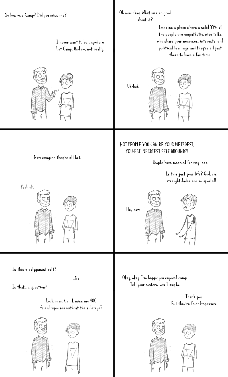 That got me, I’m crying. A camp was so amazing. I am so fucking grateful for each and every one of you. I got to be wholly myself for maybe the first time ever. This comic is incredible!