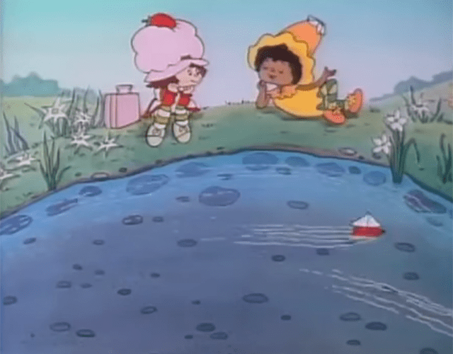 Watch as an earnest country girl struggles to find her way in the big city until she meets a Spinach Village artist who teaches her to believe in the power of her dreams. Observe as they take a turn about the park singing, “What’s your name / How’d you do? / You’re alone / I am too.” Attend for a moment as Strawberry Shortcake and Orange Blossom clasp hands and declare, “From now on, we’re a we.” Look upon them as they foil the Pieman’s conspiracies to keep Strawberry Shortcake from reaching the bake off, and marvel when Strawberry wins and comes to the conclusion that she’s just a country girl at heart.