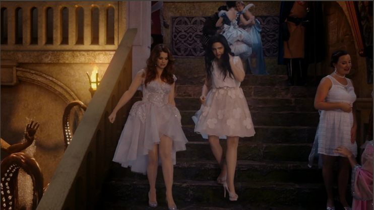 Back in Green Screen Kingdom, Ariel and Snow are all decked out in their sophomore semi-formal dresses, and boy, are they…something. Actually, pretty sure the extras in these scenes were outfitted by an intern run to Forever 21 and Maurice’s, so.