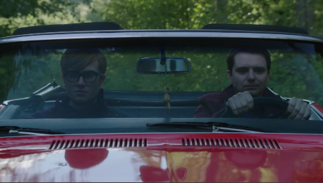 This episode picks up in Storybrooke at the beginning of the season, back when they first sailed to Neverland and Belle was left in charge of everything, as she is a very capable person when she’s not crippled by her relationship with Rumpleforeskin. There’s a lot of magical environment set-up stuff to be done in these first scenes, so go ahead and put your vegan turkey in the microwave because it’s all kind of a narrative blur. The townspeople have to mine pixie dust and run around importantly and make a magical forcefield because some 2005-era hipsters are en route to Storybrooke in their red convertible. A convertible in late autumn Maine? Those boys’ nipples could cut glass at this point.