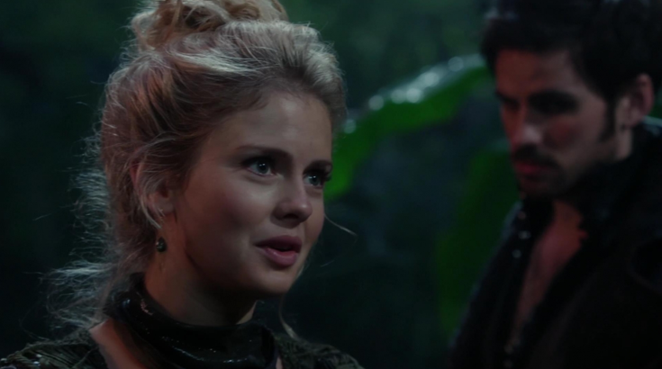 Somewhere else on Neverland, the island of the same sound stage from different angles, Pan has run across Rumple. Pan says his old family has forsaken him, so why doesn’t Rumple go make a new family with Belle because Belle “looks fertile”? That is a direct quote. I think my cervix actually shrunk in horror during this scene.