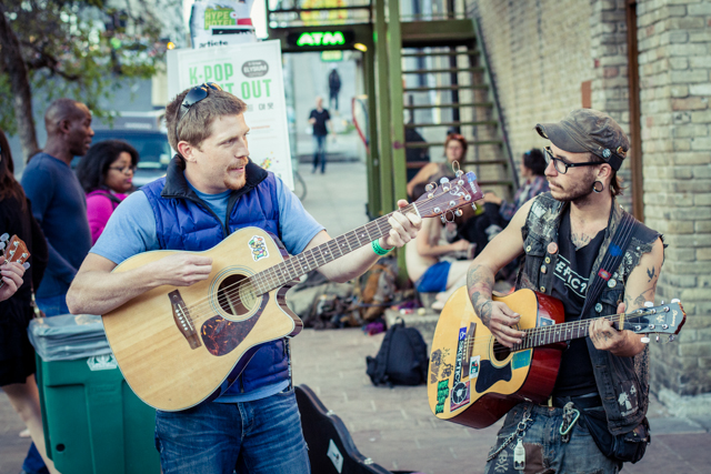The majority of the action happens on a particular strip of 6th St. — akin to Bourbon St. in New Orleans — where walking feels like a videogame of avoiding drunken zombies. It’s where gutter-punks jam with tourists, buskers mingle with costumed wanderers, and spectacle spills out to street from all the bars.