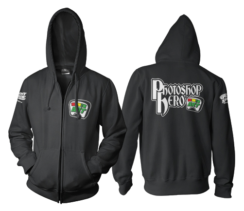 Maybe you don’t have mad skillz at playing the fakeguitar. Maybe you mainly use your dexterity for keyboard shortcuts in Photoshop! This hoodie is inspired by a hilarious design geek comic by Penny Arcade. And if you snag one, clone stamp the thing immediately because I want one!