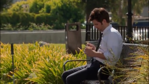 In case you’ve never experienced Treat Yo’Self Day (pretty sure it’s a National Holiday), it involves going to the spa and the mall to buy things you normally would have no way of justifying. You also make everything you say into a jingle. Donna is concerned that Ben has been down lately. He has been. He misses Leslie and is wondering what he’s doing in Pawnee now that they can’t be together. Tom is worried Ben will ruin their day because he doesn’t know how to relax. He sees how sad Ben truly is when they come across Ben eating soup, alone, on a bench.