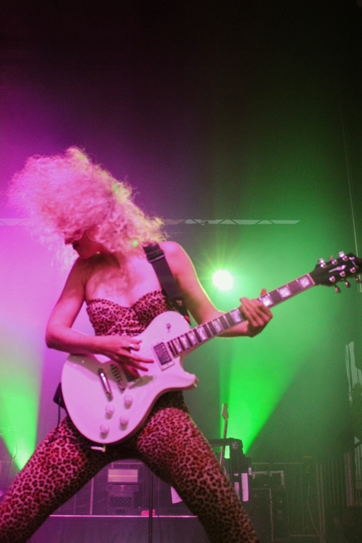 Kentuckiana Pride, like many of Chappell’s shows, is held right in the waist of the Bible Belt, creating an environment that’s especially liberating for fans with backgrounds similar to her own. Chappell grew up in a conservative religious community in Willard, Missouri, attending church three times a week. The Aces, who opened for Chappell at Kentuckiana Pride, hail from Provo, Utah and were all raised in the Mormon church before eventually leaving, three of the four band members coming out as queer. A Pride show in the Bible Belt featuring two queer acts who grew up in strictly religious environments and with one of them dressed like Divine? Now that’s what I call church. Chappell’s mom was also in the crowd at Kentuckiana Pride, and Chappell gave her a shoutout from the stage. It can mean a lot to young queer people in these regions to see familial support. And it’s the queer artists who are from the South and Midwest who really understand what it means to make a life here. Megan thee Stallion’s massive arena tours similarly prioritize the South, paying tribute to her Texas roots, and her tour this summer is also ultra gay and femme.