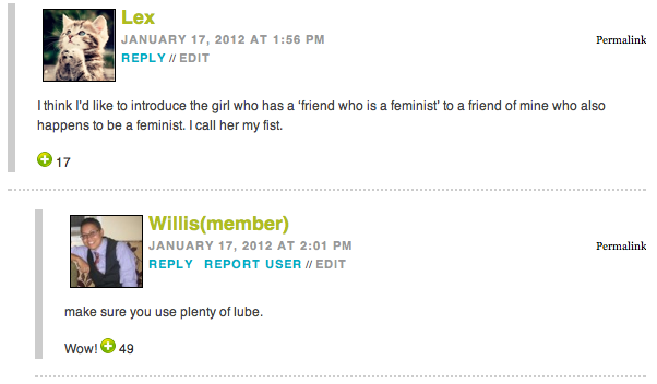 The Doesn’t Your Teacher Know That Lesbian Sex Isn’t “Real” Sex? Award to Kate B: “As someone who recently finished high school sex ed, I almost got failed for answering the question “What is the only 100% way to not get pregnant” by saying “Have sex with girls!”