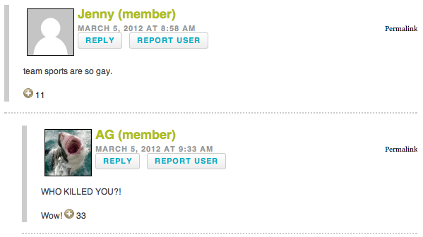 The Easy Like Sunday Morning Award to Tarzan: “I’m reading this while sitting in the living room with my parents who are watching church on tv. Amen to lesbian porn and girls on top.”