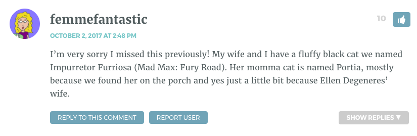 It’s so perfect you miss the chance to appreciate Portia the Porch Cat until you’ve read Impurrator Furriosa 9 times to get all your squeals out.