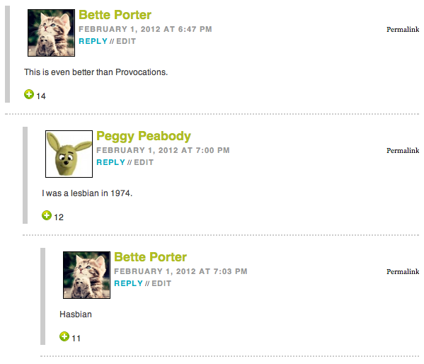 The Provocations comment needs to go in the Autostraddle comment hall of fame.
