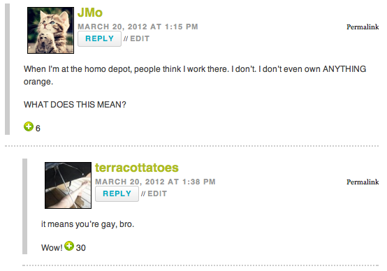 The If By “J” You Mean “Ho” Award to terracottatoes and JMo: