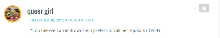 See a clever, hilarious or thought provoking comment around this website-ship? Email it to me at: bren [at] autostraddle [dot] com!