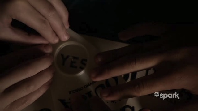 Connor and Jude are playing with a Ouija board and Jude asks if he mom is there and it says “yes”. Then, he asks, “Is it okay if Stef and Lena adopt me?” It says “yes.” I was actually relieved. I was afraid this show would go down some weird path if the Ouija board said “no.” This is what melodrama does to a person!