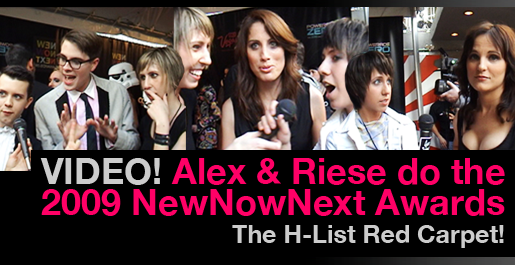 We present the full cut — all ten lovely minutes — of the NewNowNext Awards Red Carpet starring Riese and Alex (sidenote, as of 3:30 PM EST, it was still processing, so it might not be at full quality quite yet):