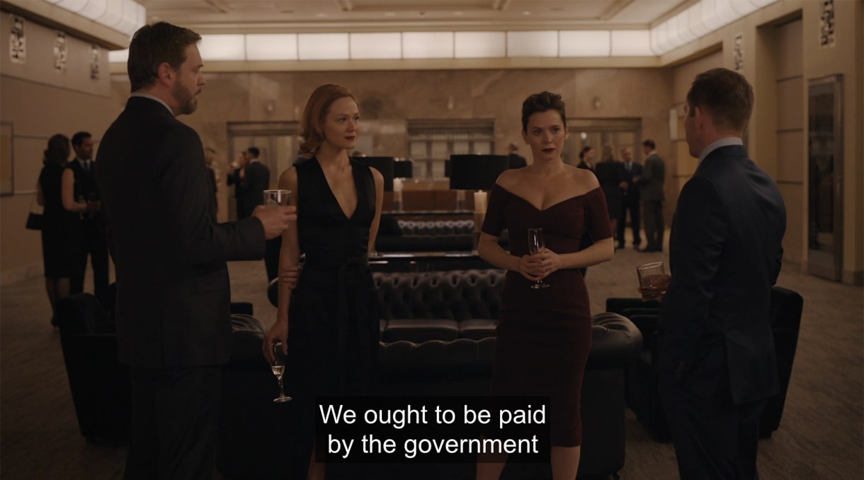 Much like the story of how paint learned to dry, the story of fiscal conservatives facilitating the transfer of large sums of money from business assholes to politics assholes is staggeringly dull, providing zero sympathetic or even interesting characters. Eventually every man in the show starts to look the same, and Erica’s catastrophe is a tangled mess threatening to bring down a categorically unlikeable group of people.