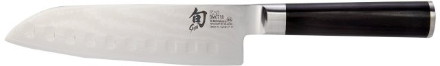 I recommend either a Western-style chef knife or a Japanese-style santoku knife. A Western chef knife is typically heavier, its handle usually has finger grooves, the point of the knife sticks straight out and is not angled down, the curve of the blade is more rounded to allow for a more rocking style of cutting, and the blade is ground evenly on both sides to a V shape. A Japanese knife is typically lighter, its handle is often flat, the point angles down, the blade is less curved for more chopping style of cutting, and the blade is often ground offset and not even. To be able to maintain that thinner edge, Japanese knives are made of a stronger steel and often hold their sharpness a bit longer too.