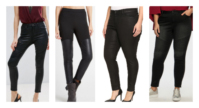 1. Coated Moto Pants 2. Leather Panel Leggings 3. Coated Plus Jeans 4. Plus Moto Jeans