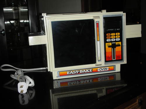 My most memorable plaything was easily my Easy Bake Oven. I received it in the early 90s and it was a favourite well into grade school. Mine was a technological marvel, echoing the harsh lines and off-white shades of yesteryear’s microwave, complete with un-clickable buttons and a sticker light display. I made all of the brownies and cakes within weeks of it’s arrival, but that didn’t stop me from playing with the tins and the 100W bulb. I would reward anyone that listened to my rambling stories for more than ten minutes with tiny empty cake pans decorated with imaginary sprinkles. (Note: I will owe you an invisible brownie)