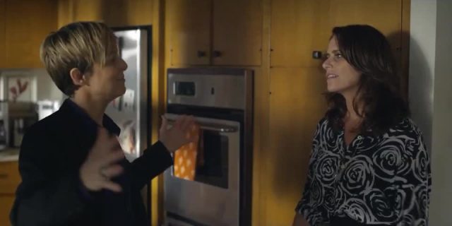 Afterwards, as Shelly and Josh place dirt over Ed’s casket, Josh asks “Is everyone staring at Dad right now?” and Shelly asks “Does it matter?” It feels glaring, the way that Shelly and Maura were so close in the privacy of the house but so separate and distant in public. Len and Sarah take their turn at the graveside, and Len asks if he can be buried next to Sarah and Tammy “if you guys end up together.” This is the weirdest question I have ever heard an ex ask of anyone ever, but Sarah handles it fairly gracefully. “Sure, if you want to.” Once Ali and Maura get their turn, Ali notices Maura’s Star of David pendant. “Since when are you into Judaism?” Ali asks. “Oh, for a while now,” says Maura. “Who knew?” responds Ali with a grimace, and stabs the shovel into the ground like she’s trying to murder it. Okay then!